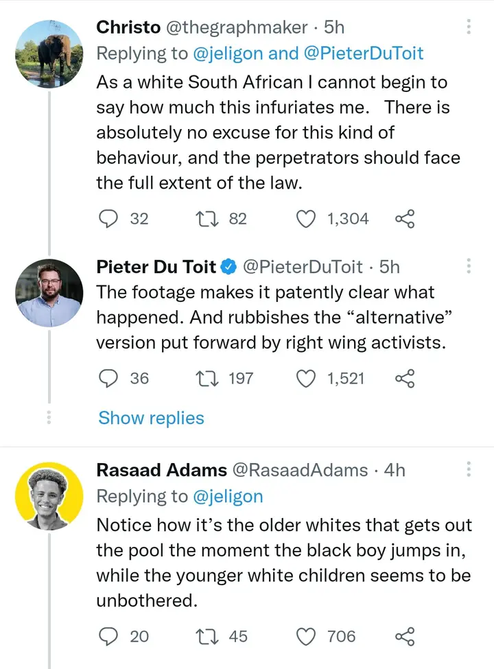 After the video trended and exposed the racism that still exists in South Africa, many other people stated that the reason the attacks took place was because the black teenage boys pushed a 3-year-old into the pool. But many people believed those were lies, and then there was CCTV footage of what took place before the fighting occurred.