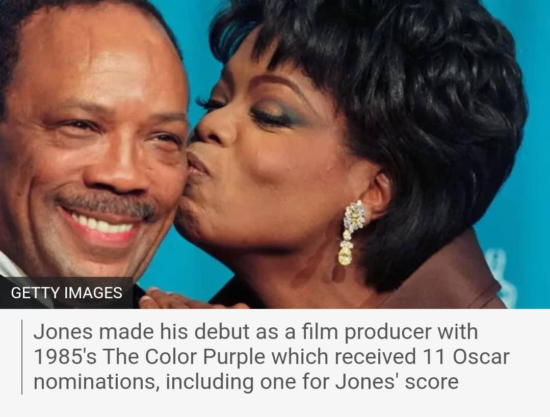 Jones made his debut as a film producer with 1985’s The Color Purple which received 11 Oscar nominations, including one for Jones’ score