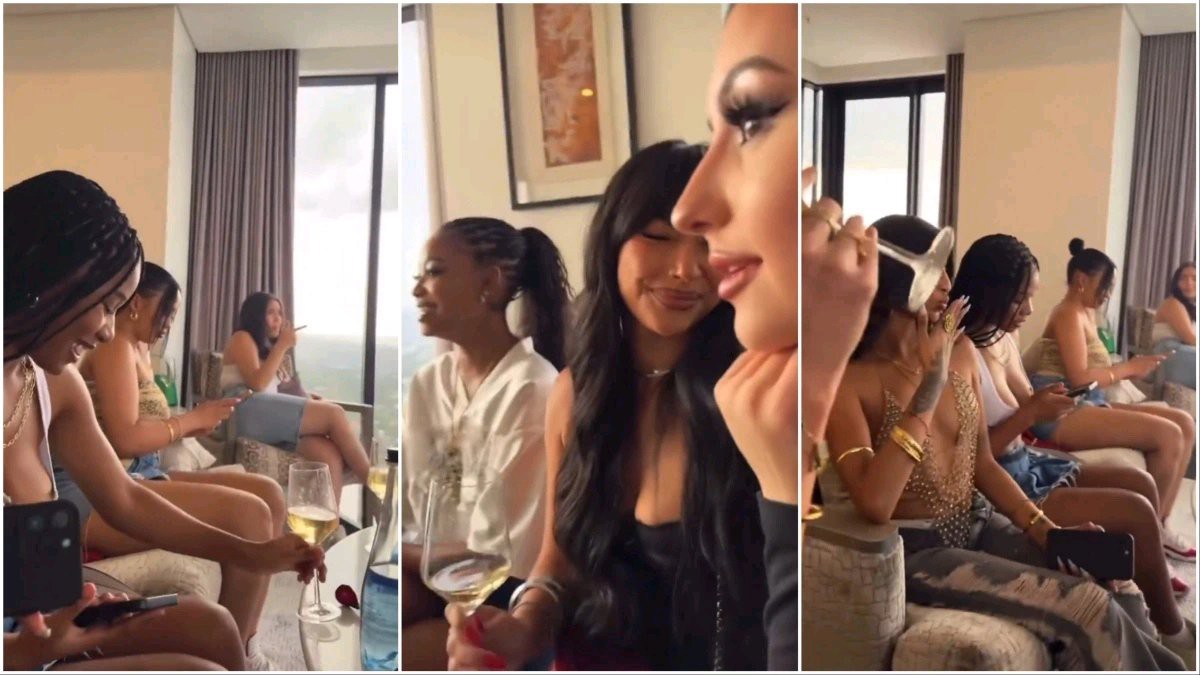 In pictures and videos circulating on social media, the girls follow him everywhere and are with him backstage. In another video, the baddies are in a house booked for Chris Brown, smiling and sipping expensive bottles.