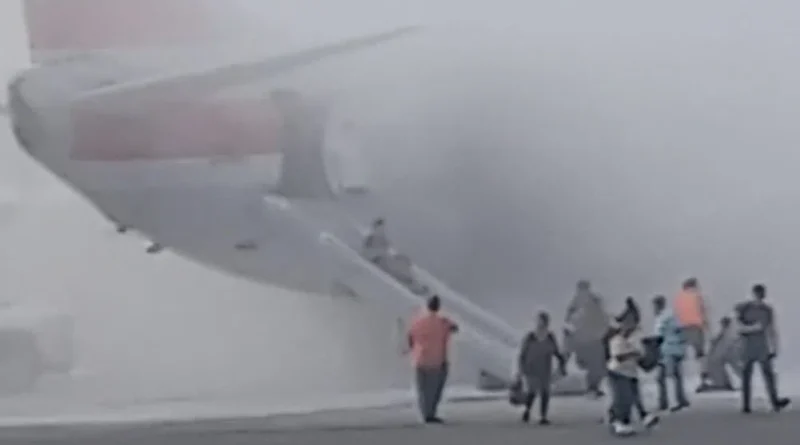 Photos and videos posted by news outlets showed passengers standing on a plane’s wing as smoke surrounded the aircraft. The FAA said passengers exited using the slides.
