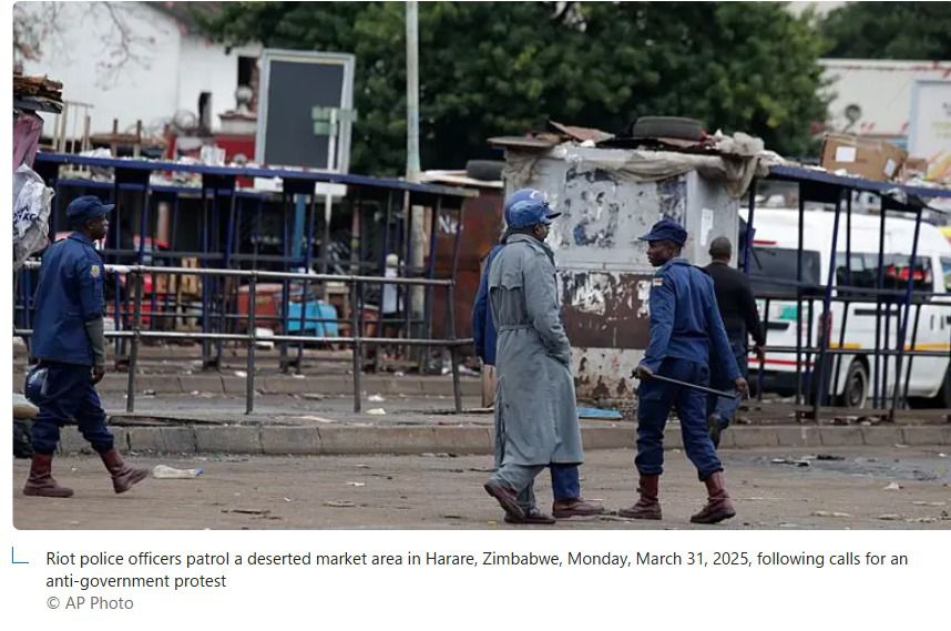 A large police deployment in Harare and other cities on Monday largely neutralized a call by war veterans for large protests against plans to extend Mnangagwa’s rule and rampant corruption.
