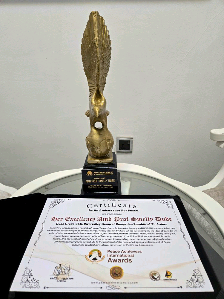 Rivervalley Group of Companies Chief Executive Prof Dr. Smelly Dube has been inducted into the 2025 Peace Achievers International hall of fame as the Most Inspiring Personality of Africa.