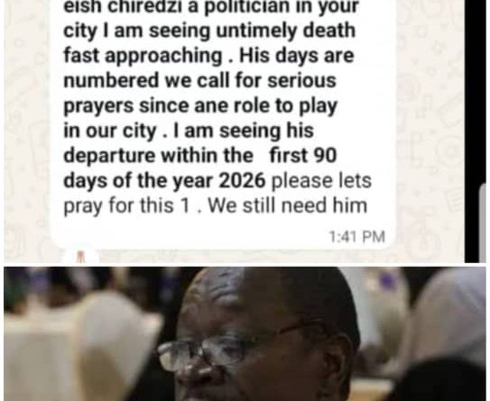 “Chiredzi i am seeing a politician in your city whose untimely death is fast approaching . His days are numbered we call for serious prayers since , for this one has a very important role to play in the city . I am seeing his departure within the first 90 days of the year 2026.Please lets pray for this one . We still need him”, he wrote on WhatsApp.