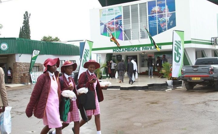 People walk by the Mozambican pavilion during the Zimbabwe International Trade Fair in Bulawayo, Zimbabwe, on April 23, 2026. (Photo by Tafara Mugwara/Xinhua)